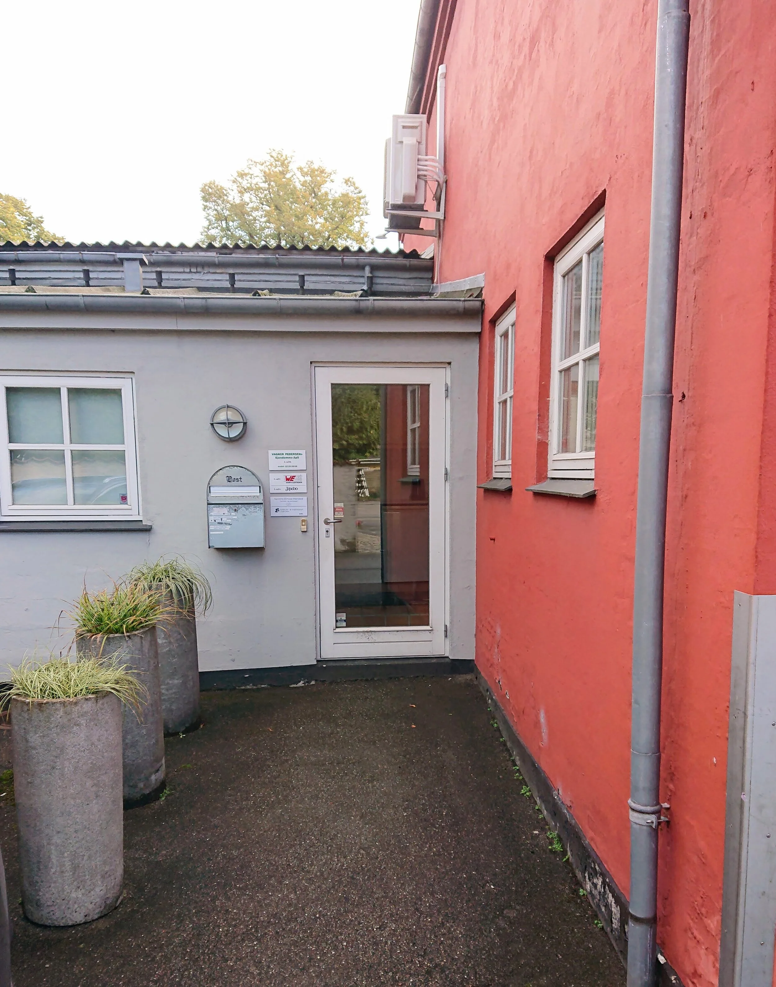 Indgangen til min klinik finder du/I i baggården til den hjørnebygning, der vender ud mod lyskrydset mellem Alléen og Slagelsevej/Ringstedvej. Der er (oftest) parkeringspladser i baggården og indkørsel til baggården er ved Esso-skiltet fra Slagelsevej.